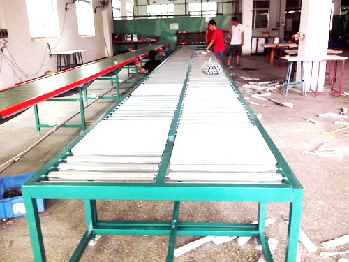 因為流水線鋁材結構的生產加工工藝流程只需開料,開洞和非常少的鈑金折彎,生產加工簡易,安裝便捷,防止了銥金結構的多工藝流程生產加工,使加工過程大幅簡化。另外緩解了很多手工制作的鈑金件勞動效率,既提升了生產率又有利于采用自動化生產方式。
